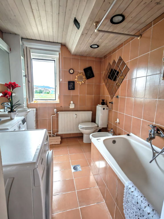 kopalnico (kad, bide, WC, pralni in sušilni stroj).