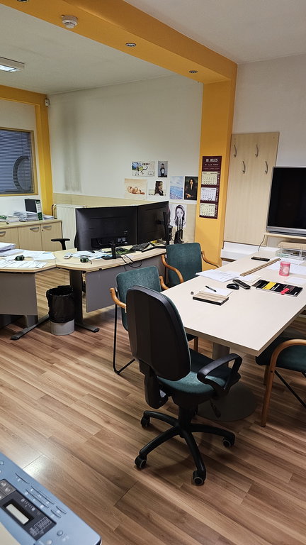 Pisarniški prostori so urejeni in opremljeni in urejeni poleg proizvodnih prostorov skupne površine 164,30 m² in je sestavljen iz več ločenih pisarn , kuhinja in sanitarije ( tloris v priponki )